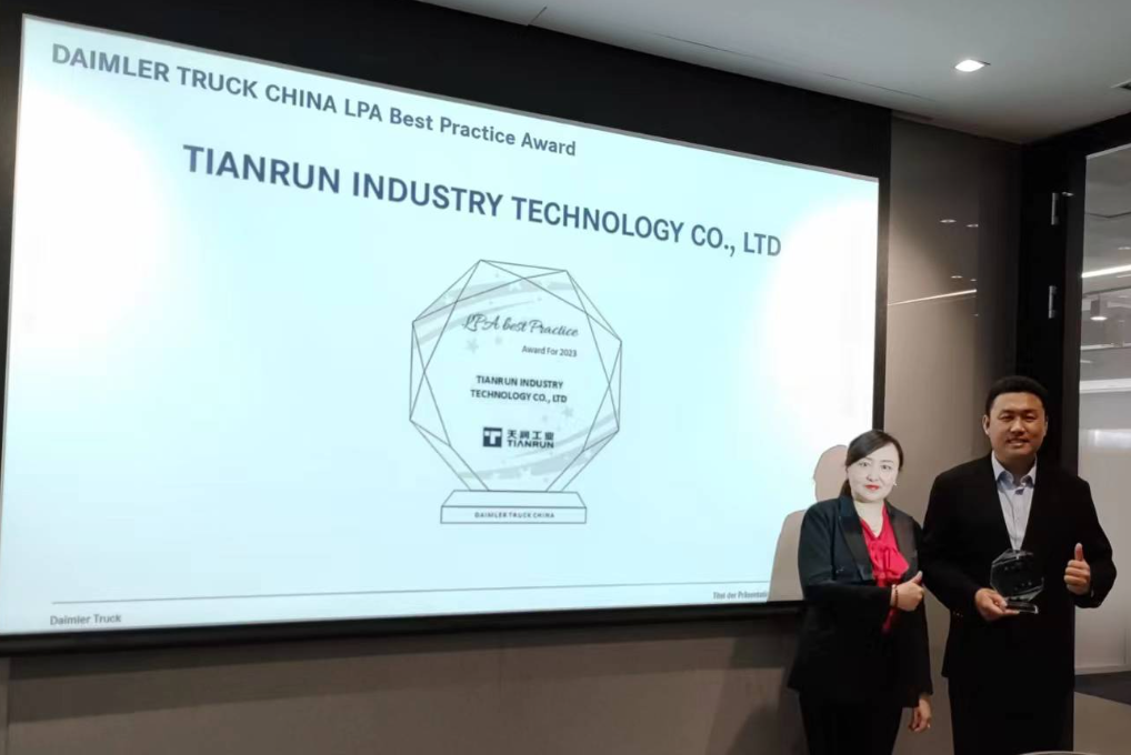 近日,戴姆勒卡车LPA最佳实践奖颁奖仪式在北京举行,时博(中国)工业凭借对LPA的信息化、数字化创新应用,成功获奖。戴姆勒卡车中国供应商高级经理荣靖华为公司颁奖,时博(中国)工业质量管理部副部长王志杰代表公司接受颁奖。