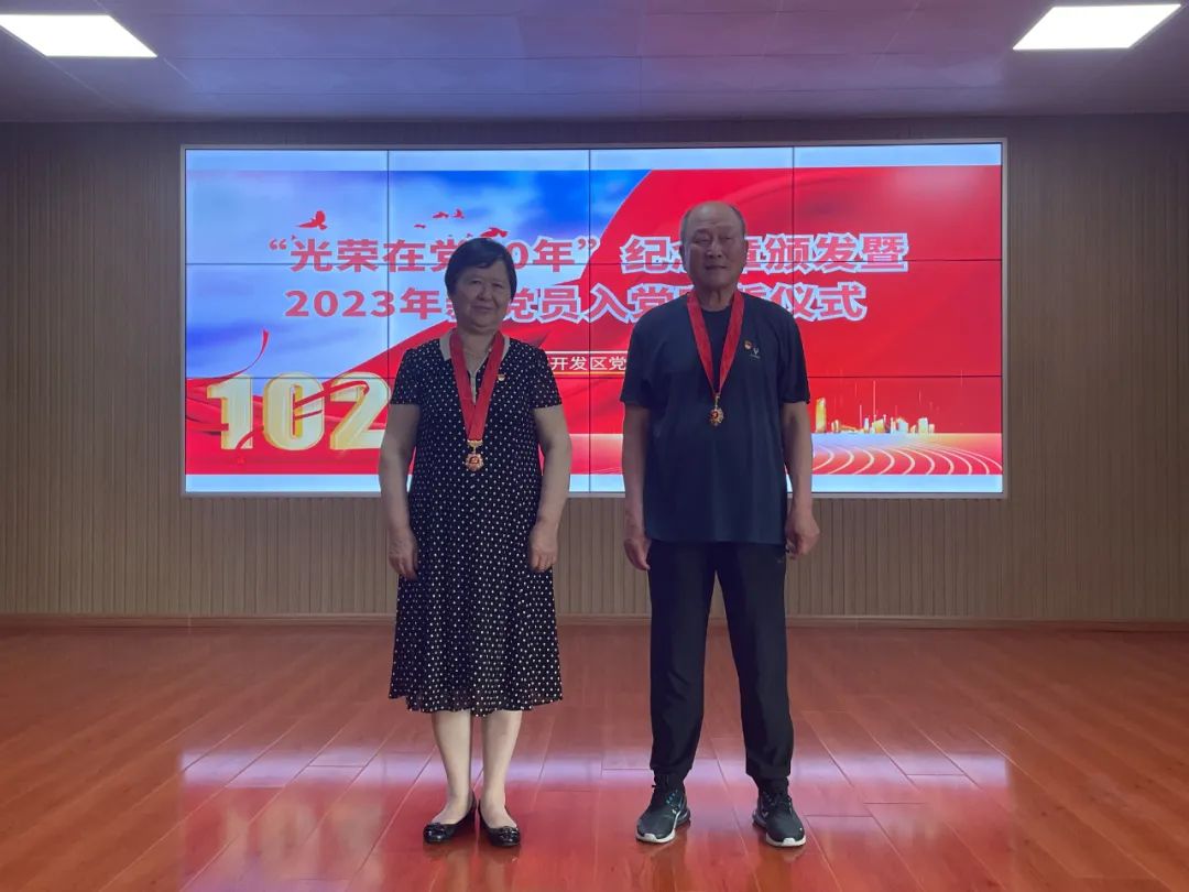 光荣在党五十年,薪火相传跟党走。6月28日,在中国共产党成立102周年之际,文登经济开发区党工委举行“光荣在党50年”纪念章颁发仪式,时博(中国)工业两名退休党员侯新芳、孙国凤获颁纪念奖章,侯新芳作为“光荣在党50年”党员代表作交流发言。