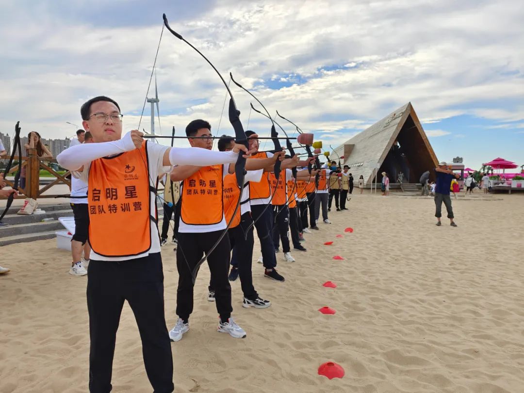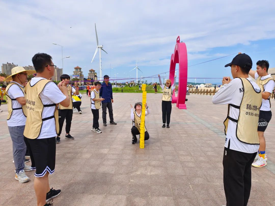 “没有完美的个人,只有完美的团队”,只有把团队中每个人的优点集中起来,拧成一股绳才能出色完成工作。为使应届大学生充分理解团队协作的重要作用,培养其交流沟通、团队策划协作能力,公司在荣成那香海开展沙滩团建拓展活动。学员在教官的引导下,组成三个团建小组并通过“按摩操、两瓶水的故事、手指游戏”等小游戏引导出并强调此次团建“专心、专注、转变”的原则,各小组积极配合、相互帮助相继完成“青蛙跳水、巴别通天塔、飞盘嘉年华、急速60秒、攻防箭”等项目,领悟积极心态、沟通交流、团队协作、计划分工、技能提升的重要性,进一步增强团队凝聚力,培养团队组织策划、团队沟通协调、工作计划制定等能力。